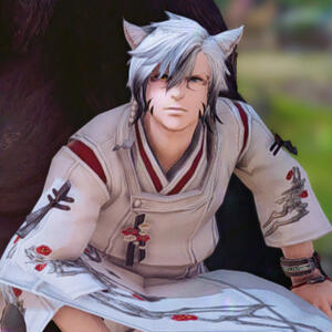 Yehn'ir has 5 older siblings. Till this day he does not know of their whereabouts.When Towa handed him over to Maetiberk before passing away she handed him her moonstone necklace as well. Every full moon Yehn'ir goes outside to pay his respects to his parents and kisses the moonstone.Yehn'ir was pushed around by male hyurs during a young age which added to his hatred, however he was always popular with the girls no matter the race.He loves reading and writing Haiku.Whenever he had a crush on someone as a kid, Yehn'ir would tease them or be mean to them because he didn't want them to know about it.He likes to fish when he's angry because he likes to imagine his adoptive dad is right next to him as he vents to himself about why he is mad.Yehn'ir can't handle his alcohol and it has got him into more trouble than he can count so he tries to avoid it these days.He is a retired NIN and specializes in AST, like his mother.He had a gambling addiction but got help. Now he gambles in moderation.He inherited his blue eye from his dad and his yellow one from his mother. His highlighted hair is also natural as he inherited both colors from his parents. White (Mother) / Black (Father)He has a Ufiti companion named Tobi who is also his mount of choice.Although his surname is technically Yoshiharu due to his dad's side he takes up the surname Nelhah instead.